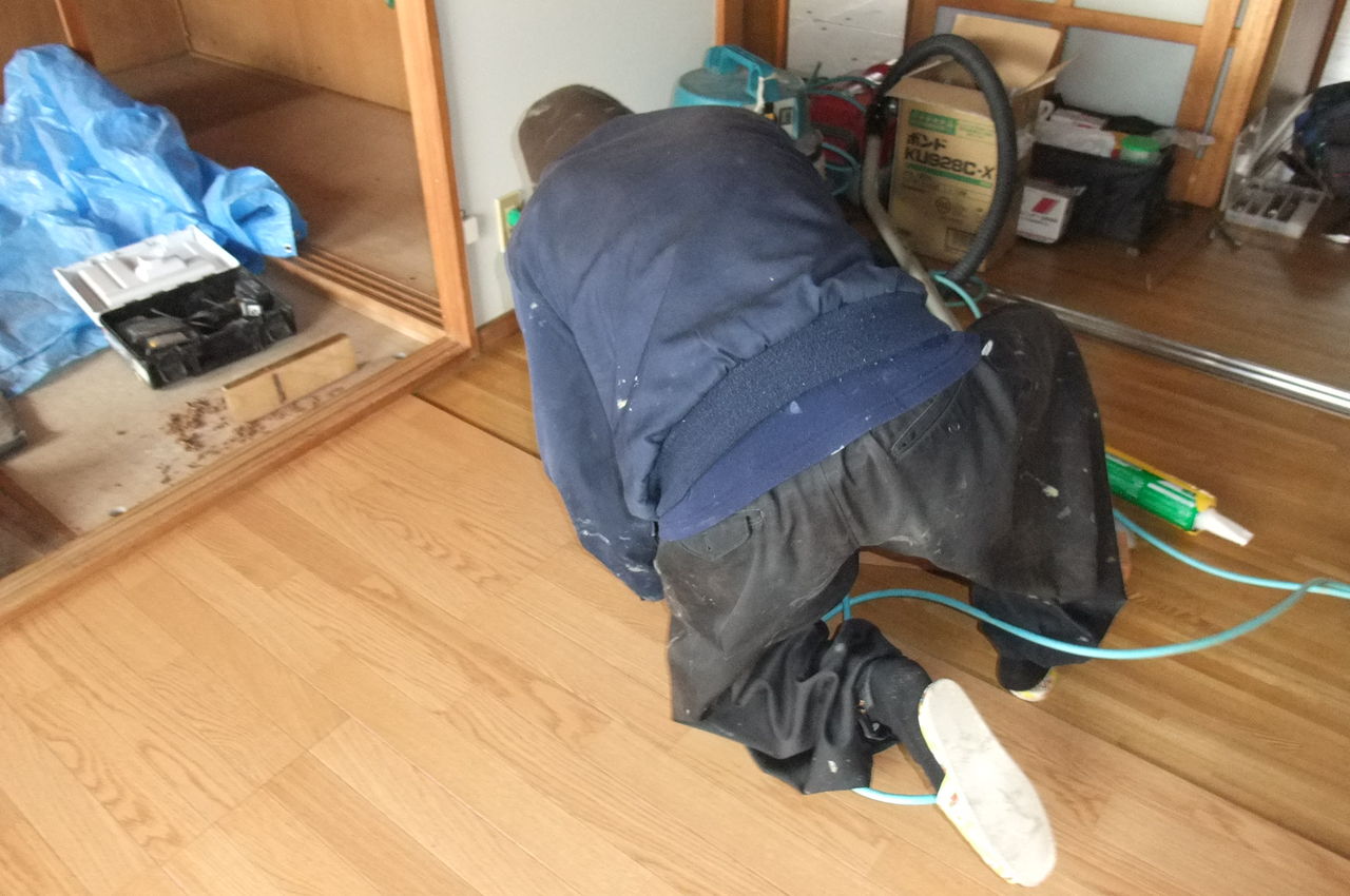 今回は床下の確認が不要なお部屋での施工でしたが、一般的なお住まいでは、床下の腐食があって施工できないこともあり注意が必要です。