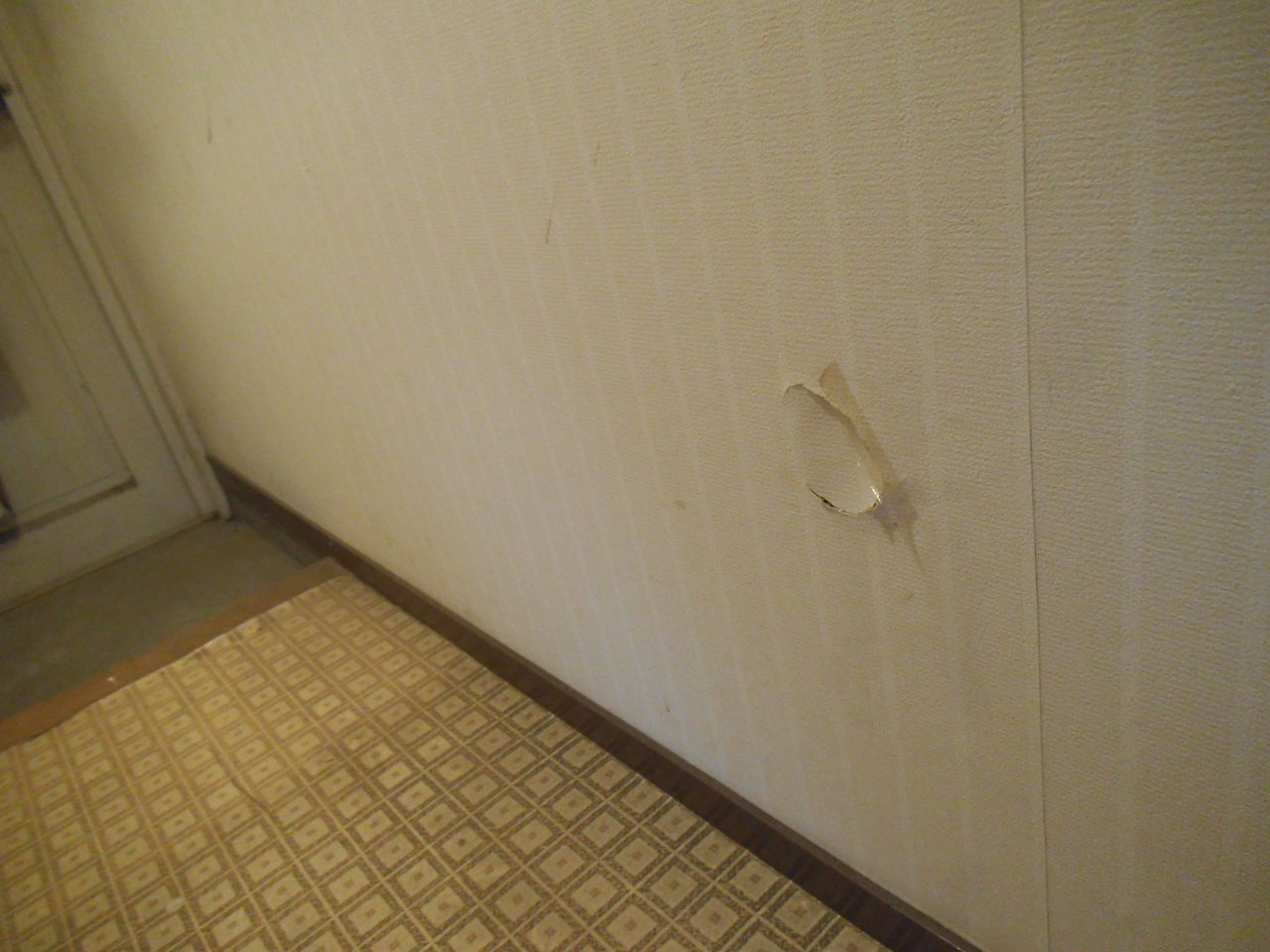 廊下の壁には穴が空いていました。