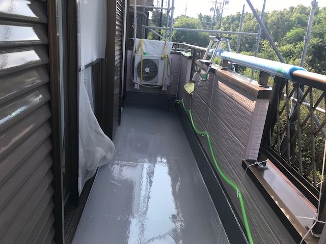 ベランダの床防水シートが傷んでいましたので、塗膜防水を施工しました。