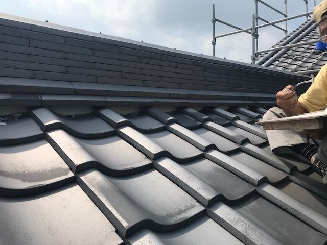 屋根しっくいが落ちていましたので、左官屋さんが補修中