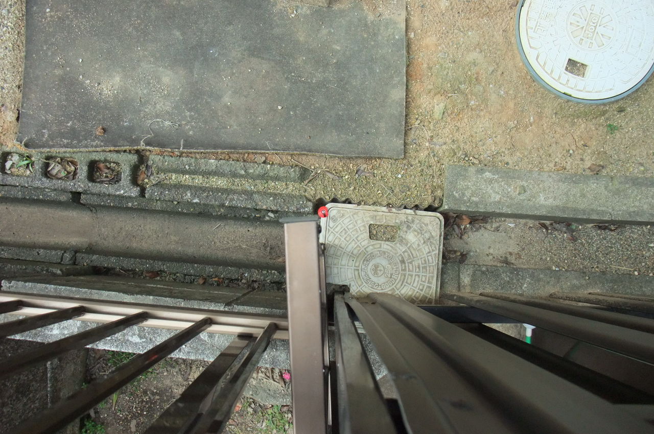 枡の左上にある赤いのが境界杭。