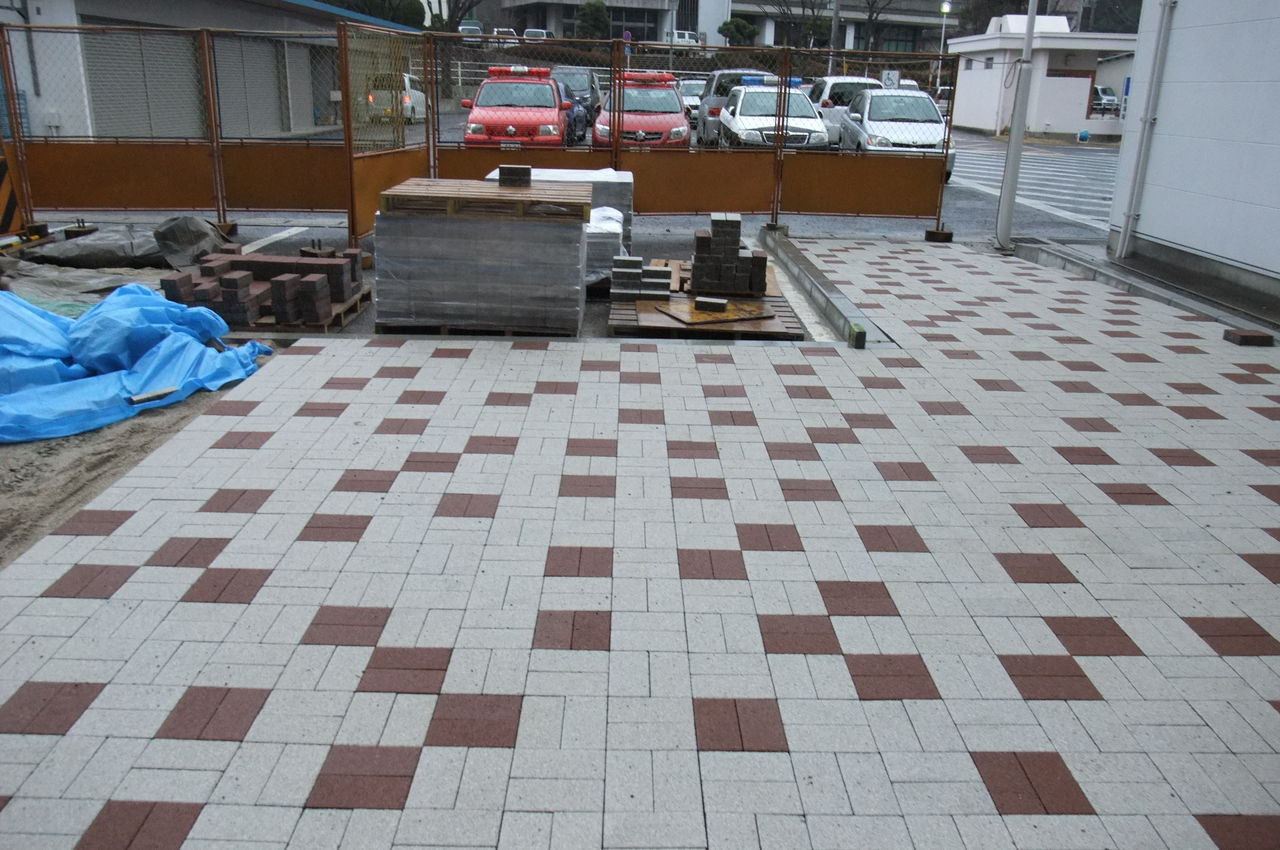 インターロッキングブロックというのは、舗装用のブロックのことで、滑りにくく、水はけが良いので舗装に良く使われていますね。