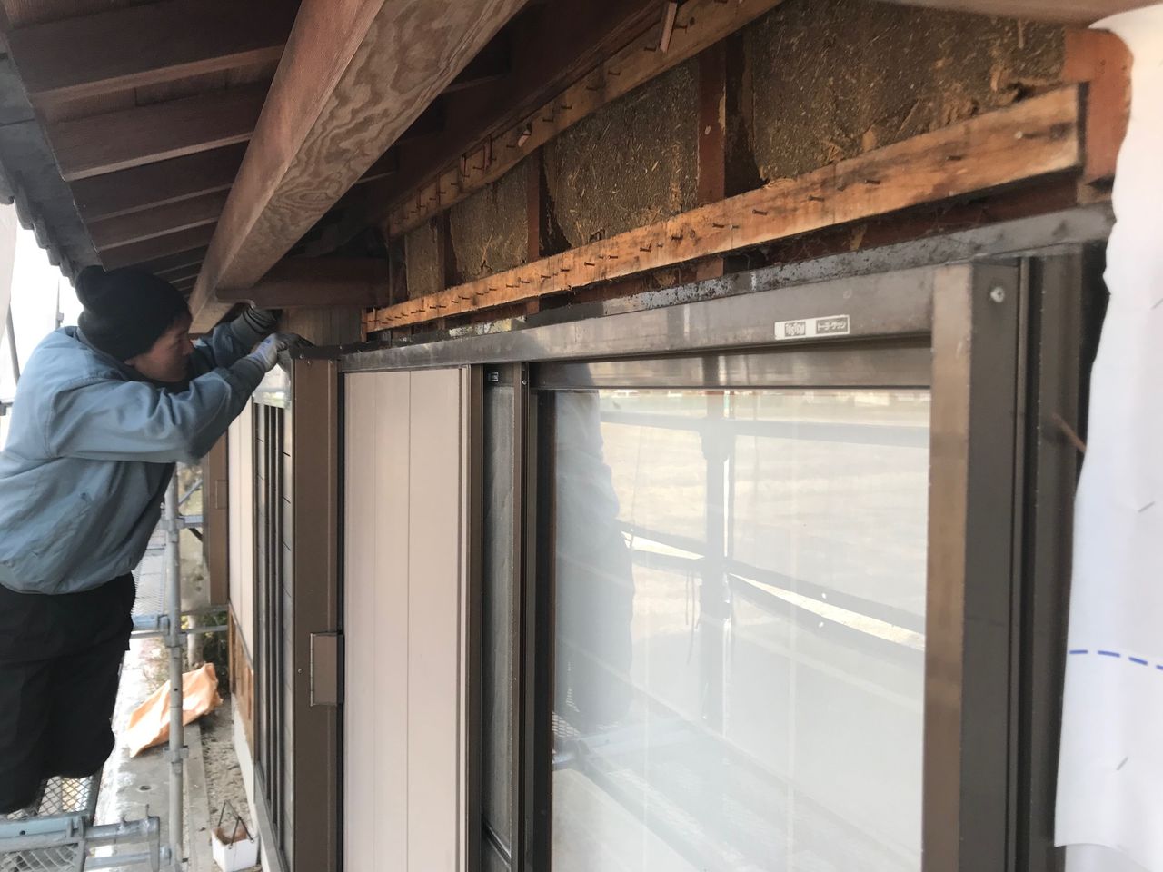 【ブログ更新】木の板で出来た外壁を板金張りに変える工事が始まりました。[みよしの社窓から]