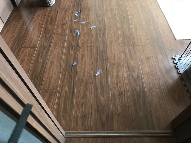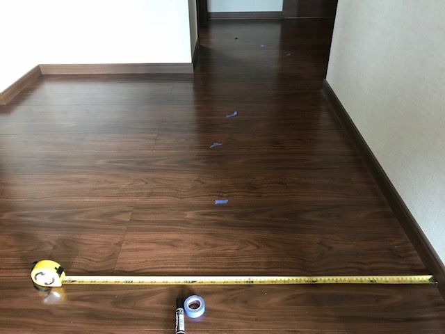 【床鳴りのする場所に目印を。およそ、一直線上にあるのが見てとれます】