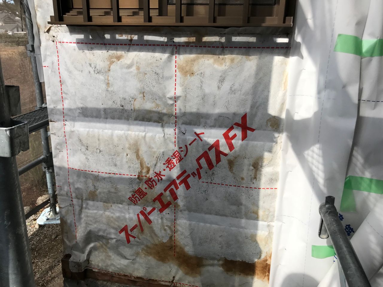 【外壁にはってある白い紙が防水シートと呼ばれるものです】