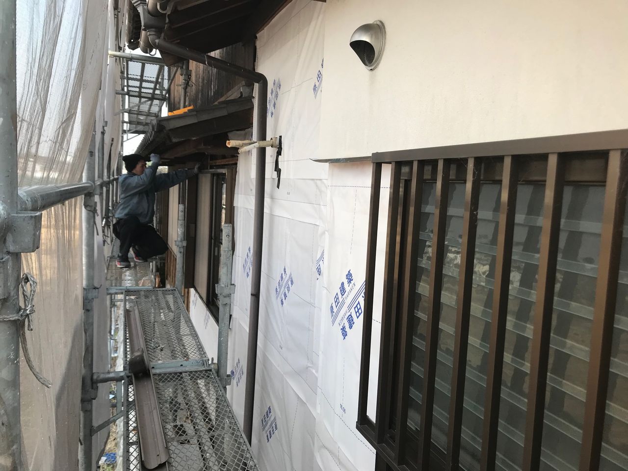 現在、外壁張替え工事中の豊田市内某所のお客さま。